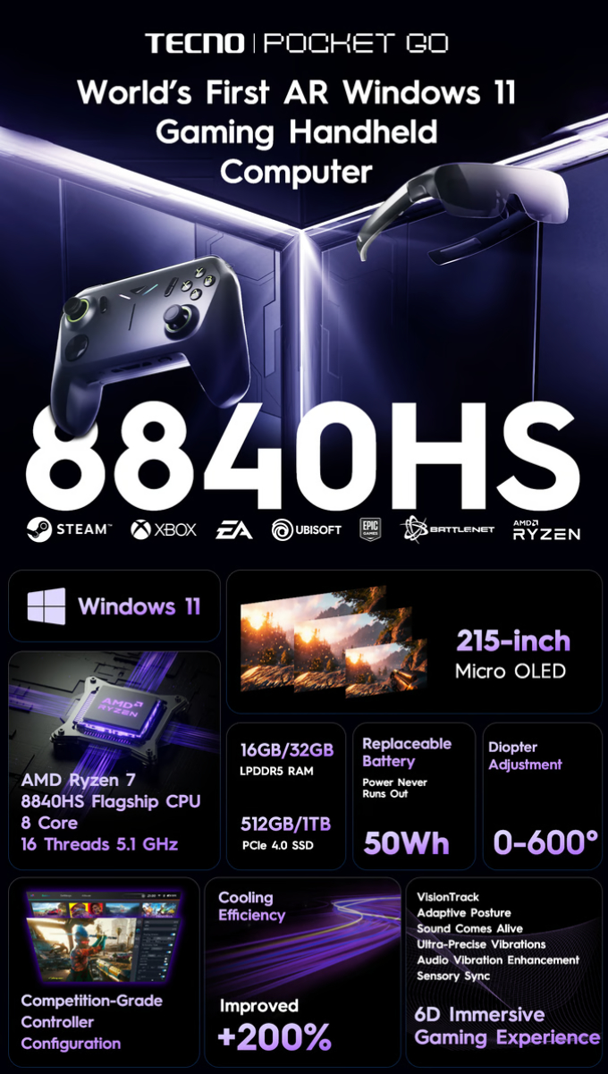 Tecno onthulde de Pocket Go in februari tijdens MWC 2024waar het verschillende belangrijke specificaties bevestigde en hoe het apparaat eruit zag. Daarna bracht het hetzelfde apparaat naar IFA 2024 in september, zij het zonder prijzen of beschikbaarheid te noemen. Ter referentie: de Pocket Go-controller draait Windows 11 met de volgende hardware: