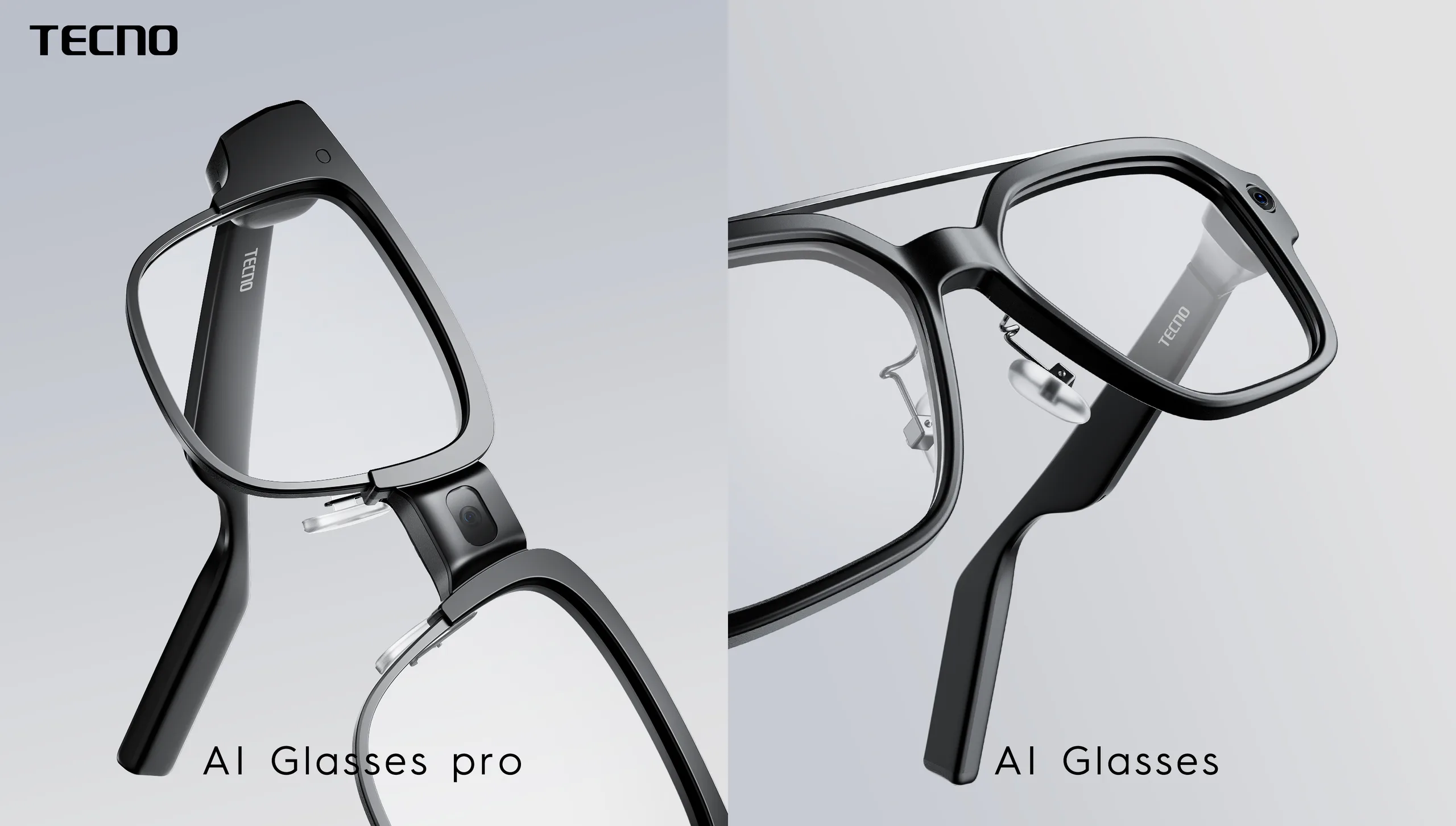 De twee nieuwe wearables, de Tecno AI Glasses en Tecno AI Glasses Pro, zien eruit als een doorsnee bril, maar bevatten veel AI-technologie. Qua ontwerp zijn de Tecno AI Glasses en Tecno AI Glasses Pro gemaakt van een magnesiumlegering en ultralichte composietmaterialen, waardoor ze net zo licht zijn als een zonnebril. Ze zullen verkrijgbaar zijn in twee ontwerpen - wenkbrauwmontuur en vliegeniersstijl.