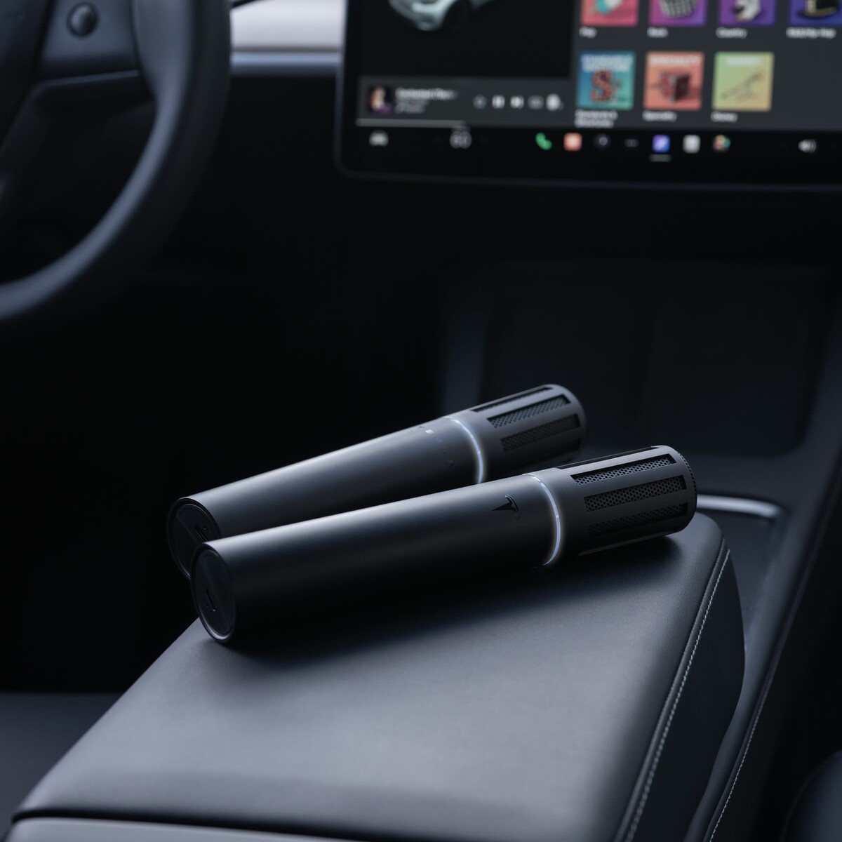 Tesla's andere nieuwe product voor plezier in de auto - de CaraokeMic - is echter ook beschikbaar gemaakt voor aankoop in de VS.