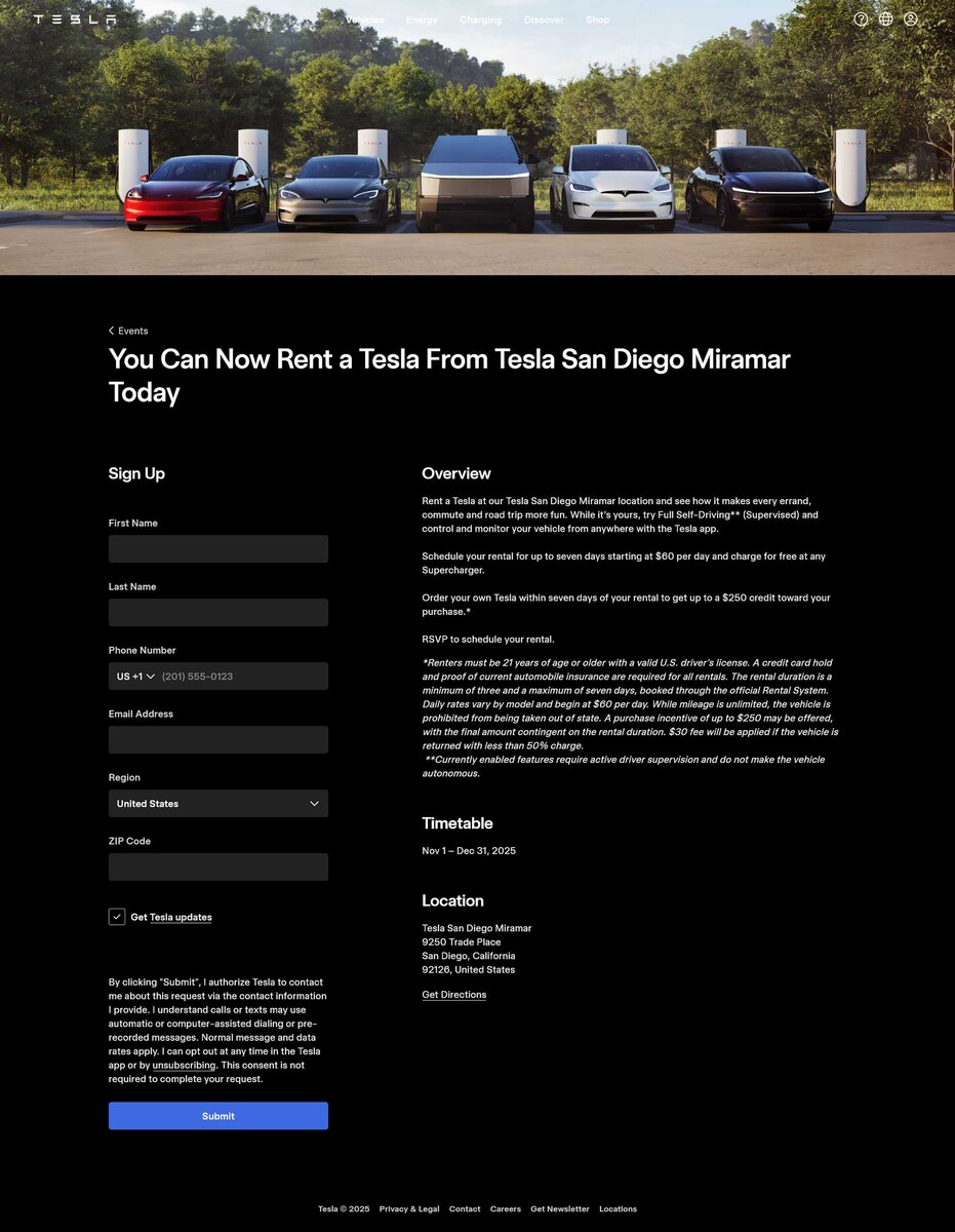 Tesla wil met zijn onlangs gelanceerde verhuurprogramma nieuwe klanten aantrekken in de VS en tegelijkertijd de voorraad verminderen. De proefperiode begint in geselecteerde Tesla-winkels, zoals in San Diego, en zal in eerste instantie beperkt zijn tot de periode van 1 november tot 31 december 2025. Het lijkt erop dat Tesla probeert de verkoopcijfers voor het einde van het jaar op te krikken. Of de promotie wordt uitgebreid naar andere markten blijft onduidelijk.