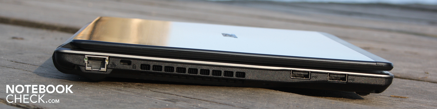 De positionering van de rechter en linker poorten, zelfs de ethernetaansluiting, lijken niet echt doordacht geplaatst te zijn. Uitstekende kabels, met name VGA- en HDMI-kabels, voorkomen het gebruik van een muis of dragen in elk geval bij aan een chaotische tafel.