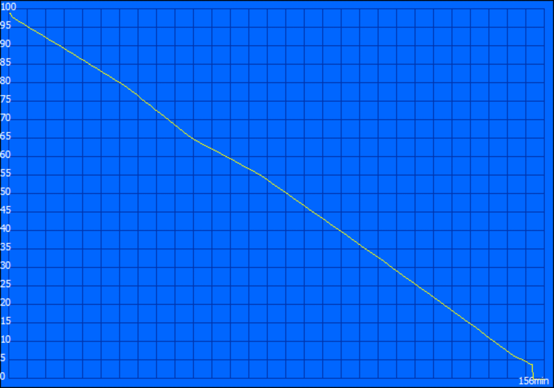 De batterijduur tijdens internetten via WLAN bedraagt 2:36 uur (156 minuten). We bezochten tijdens deze test nieuwssites en voerden een aantal downloads uit. De maximale batterijduur, bepaald met de BatteryEater Reader's test, ligt op 3:35 uur. Deze 215 minuten is echter niet representatief voor normaal gebruik, omdat de test wordt uitgevoerd tijdens inactiviteit, bij de laagste helderheid en met uitgeschakelde draadloze modules.