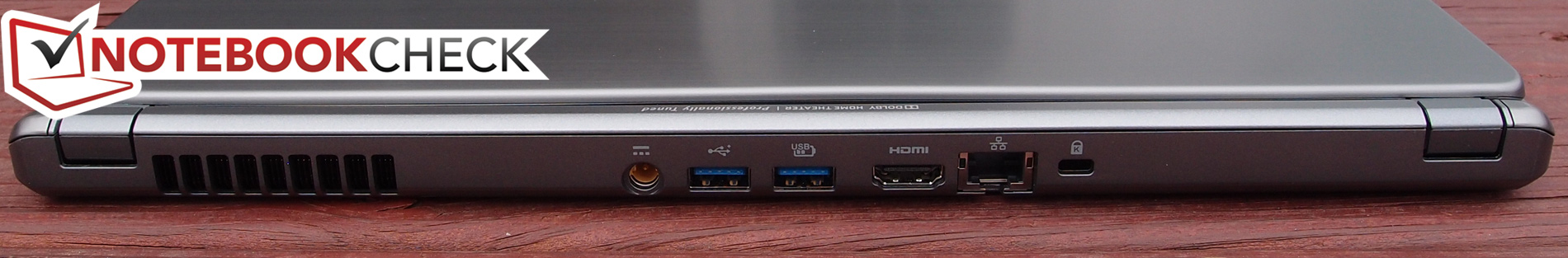 Aangezien de behuizing van de M5-481PT dik genoeg is zou je een ruim aantal poorten verwachten. In plaats daarvan krijgen we maar een handjevol poorten, inclusief twee USB 3.0 poorten (een met stroom), HDMI, Gigabit Ethernet en een welkome SD kaartlezer aan de rechterzijde. De vier belangrijke poorten zijn allemaal aan de achterzijde geplaatst van de basis unit geplaatst, zodat je de notebook moet omdraaien (of erachter moet gaan hangen) om ze goed te bereiken. Daarnaast zijn ze erg dicht op elkaar geplaatst, waardoor grotere USB randapparatuur moeilijk of helemaal niet tegelijk met een ander bruikbaar is.