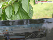 Het glimmende beeldoppervlak en de matige helderheid verhinderen het gebruik van de notebook buitenshuis. Door de storende reflecties is serieus werken in direct zonlicht niet mogelijk. Als je toch buiten wilt werken, zoek dan een schaduwrijke plek - of kijk eens naar concurrerende notebooks.