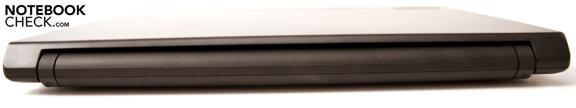 Dichtgeklapt is de notebook maar drie centimeter hoog. Ondanks de dunne constructie is de behuizing zeer stabiel. De boven- en onderkant van de behuizing kan tegen hoge druk, waarschijnlijk door de aluminium. De deksel van de display is echter niet erg sterk. Het buigt dan wel makkelijk, maar dit resulteert niet in "golven" op het scherm, zelfs niet bij hogere druk.