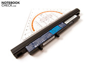 Naast de batterij status LED zit aan de voorkant alleen de 5-in-1 kaartlezer die MS, MS Pro, MMC, SD (SDHC) en xD memory media kan lezen en schrijven. Aan de achterkant zitten geen aansluitingen aangezien de 56 wh lithium ion batterij met een lengte van 27 centimeter alle plaats in beslag neemt. Acer heeft de geluidsboxen in de smalle balk boven het toetsenbord geïntegreerd.