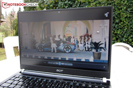 De TravelMate 8481TG kan goed buitenshuis gebruikt worden door het matte beeldscherm. Vervelende reflecties zijn nauwelijks aan de orde, waarbij de weergegeven inhoud soms donker kan uitvallen door de middelmatige helderheid. De geschiktheid voor gebruik buitenshuis is hoe dan ook een stuk hoger dan een typisch glanzend beeldscherm.