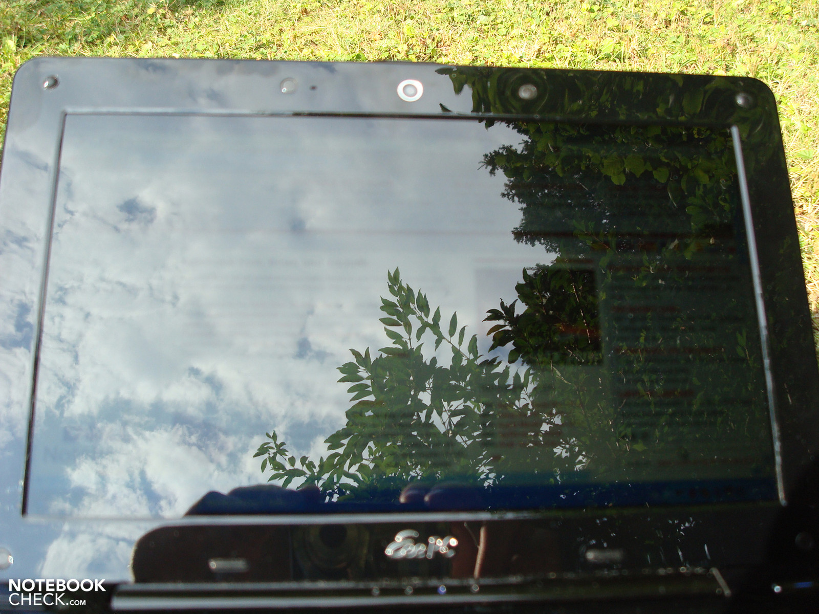 Vele mobiele netbooks zijn al negatief geclassificeerd door hun ongeschikte glanzende beeldscherm oppervlak. Evenals de helderheid en de respectievelijke contrastwaardes zijn niet overtuigend. Onze meting in het centrale gedeelte van 148,6 cd/m² daalt naar 126,4 cd/m² aan de randen. Deze volstaan enkel voor niet-problematische en lichte ruimtes binnenshuis. Felle omgevingen, zoals bijvoorbeeld zonneschijn in de tuin, of constant veranderende licht situaties, bijvoorbeeld tijdens een treinreis, maken het mogelijk dat je alleen kan werken met beperkingen. Bovendien daalt de maximale helderheid naar 131 cd/m² wanneer overgeschakeld wordt op volledig batterijgebruik.