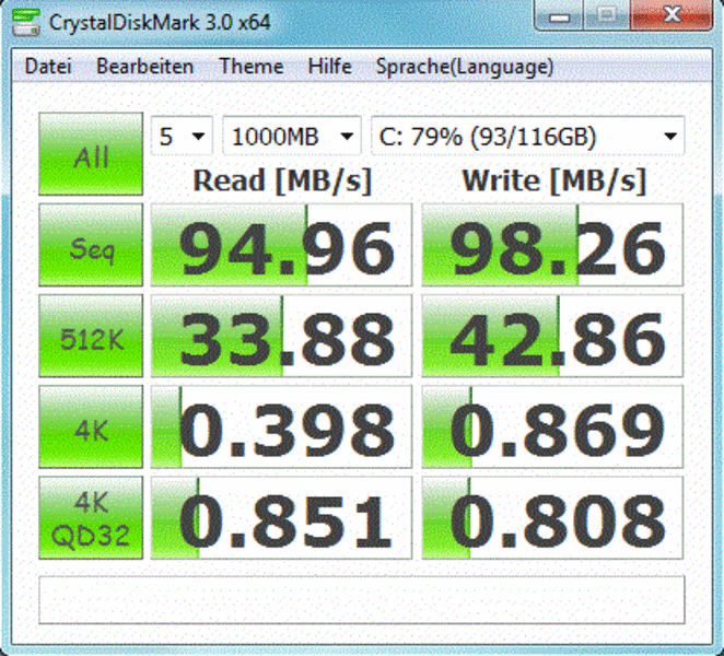De prestaties van de Seagate Momentus XT ST95005620AS (7,200 rpm) spreken voor zich: de doorvoersnelheid van 82,3 MB/s is bovengemiddeld, net als de constante leessnelheid van 94,96 MB/s en de constante schrijfsnelheid van 98,26 MB/s tijdens het testen van de schijven. Om nog meer prestaties uit de schijven te halen zou Asus ze in een RAID-0 opstelling moeten plaatsen.