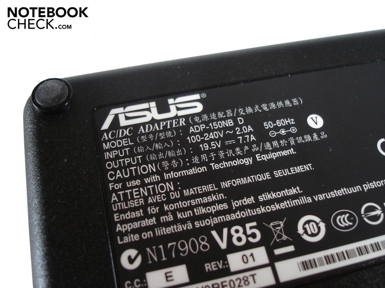 Het energieverbruik zou geen klachten moeten opleveren. Met 21,6 - 28,4 Watt in idle-modus en 111,7 - 115,7 Watt onder zware belasting verbruikt de Asus G73SW minder energie dan de meeste gamingnotebooks die even krachtig presteren (zie bijvoorbeeld de Medion Akoya X7811).
