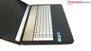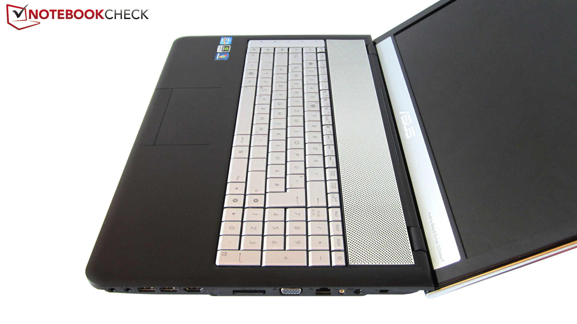 De notebook ziet er een stuk beter uit als we hem openklappen. Allerlei zilveren elementen doen het design goed. We zijn vooral te spreken over het rubberachtige oppervlak waar de polsen op rusten (links en rechts van het touchpad). Overigens voelt de N75SF ondanks het gebruik van veel plastic onderdelen absoluut niet goedkoop aan.