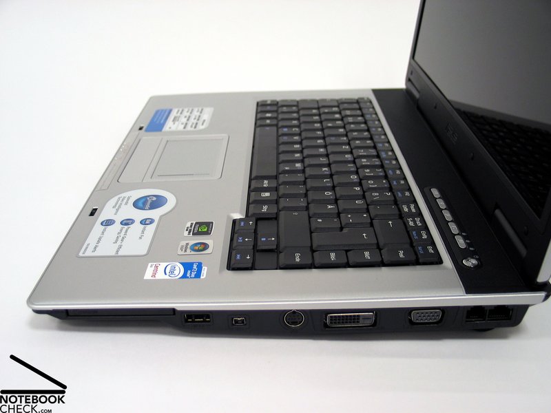 Het notebook heeft een typisch Asus ontwerp. Zilveren onderdelen aan de bovenkant gecombineerd met een zwarte basisunit en een zwart toetsenbord. Behalve de zilveren rand waar "Asus Revolutionary Notebook Series" in gegrafeerd staat, zijn er verder geen opvallende details. Al met al is het notebook best degelijk ontworpen.
