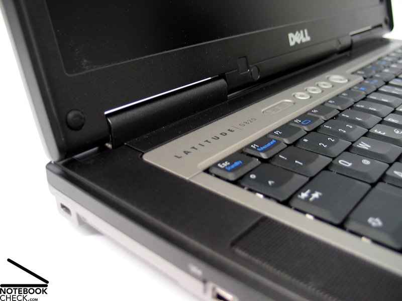 Aan de ene kant een robuuste behuizing, die merendeels uit hoge kwaliteit materialen gemaakt is, verzekerd een zeer goede flexural rigidity (buigzame stevigheid) en robuustheid van de Latitude D820. Aan de andere kant geeft deze notebook niet echt een hoge kwaliteitsindruk. Dit is vanwege het keurige ontwerp en de niet echt overtuigende haptics.