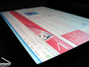 De stabiliteit ten opzicht van de invalshoek, vooral vertikaal, is niet echt één van de sterke punten van dit notebook. Niet alleen treedt er een verlies aan contrast op, ook ontstaan er grote kleurveranderingen als je van boven naar beneden kijkt. Van beneden naar boven kijkend wordt het scherm duidelijk donkerder en de grijstinten veranderen aanzienlijk. Qua horizontale invalshoek is het werkgebied meer dan genoeg.