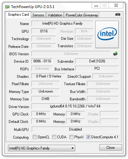 Volgens de officiële specificaties van Nvidia loopt de NVS 4200M op een kloksnelheid van maximaal 810 MHz, terwijl de processor snelheden tot 1620 MHz aan zou kunnen. In het systeemeigenschappen menu van ons testmodel werd de kloksnelheid aangegeven als 740/1480 MHz. Dat lijkt erop te wijzen dat een zwakkere versie van de NVS 4200M in onze Dell Latitude E6420 is ingebouwd.