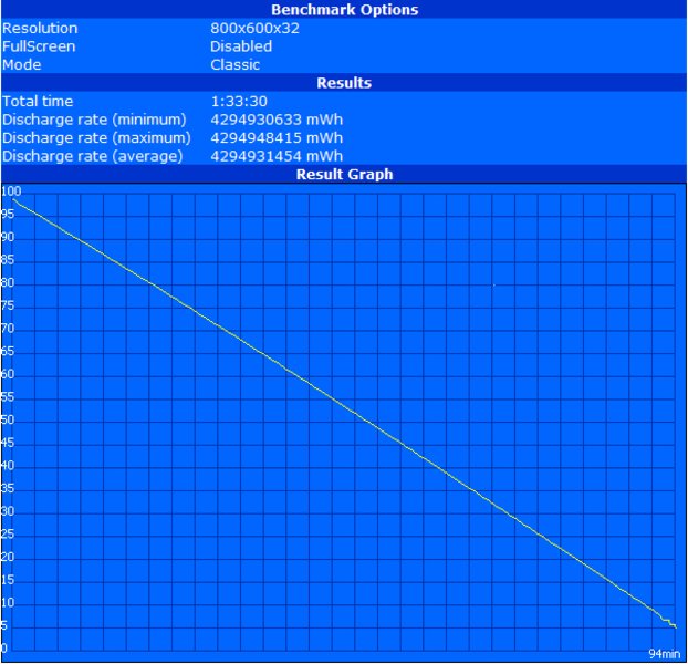 Onder belasting in de Classic test (maximale helderheid, WLAN aan, profiel: Top prestaties), was de batterijduur nog steeds 94 minuten.