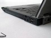 Een andere verandering ten opzichte van de grotere modellen is ook het vermelden waard. De M2400 beschikt namelijk niet over een PC-Card slot, maar over een geïntegreerde SmartCard-lezer. Het 54mm ExpressCard slot bevindt zich wel nog steeds aan de rechterkant van de behuizing, terwijl de SD-kaartlezer nu aan de voorkant zit.