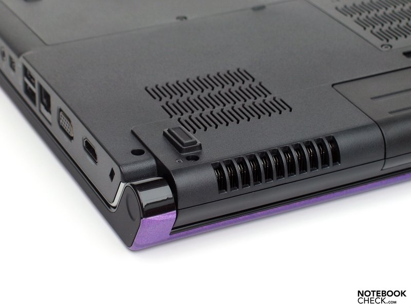 Het wordt al snel duidelijk dat de aansluitingen vooral goed zijn voor rechtshandigen, omdat de meeste aansluiting aan de linker zijkant zijn geplaatst. Een drive met een "slot-in" mechanisme en een 34mm Expresscard aansluiting en een kaartlezer zijn aan de rechterkant geplaatst. Aan de achterkant van deze zijkant is ook nog een USB poort en een aansluiting voor de voeding.