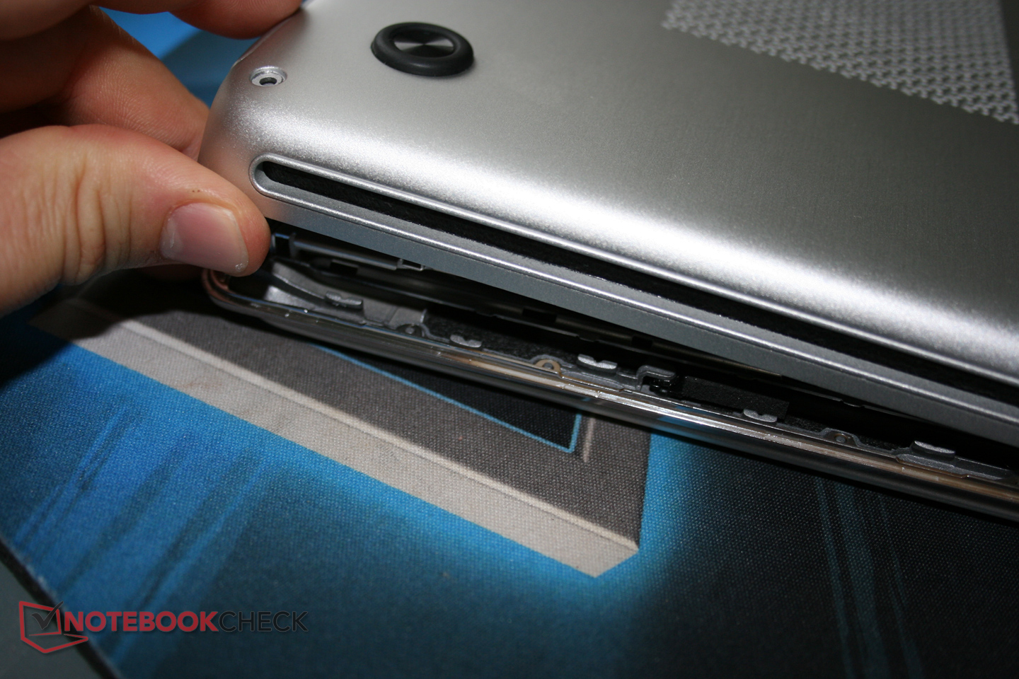 Het koelsysteem als geheel lijkt op zijn limiet te werken met de 35W CPU en de ruwweg 17W TDP van de GT520M grafische kaart. Op warme zomerdagen kan dit een probleem worden. In realistische gebruiksscenario's zien we geen throttling. In de Cinebench tests (R10 single-core) kan het volle potentieel via Turbo Boost van de 2640M CPU behaald worden, 3.3-3.4 GHz bijvoorbeeld.