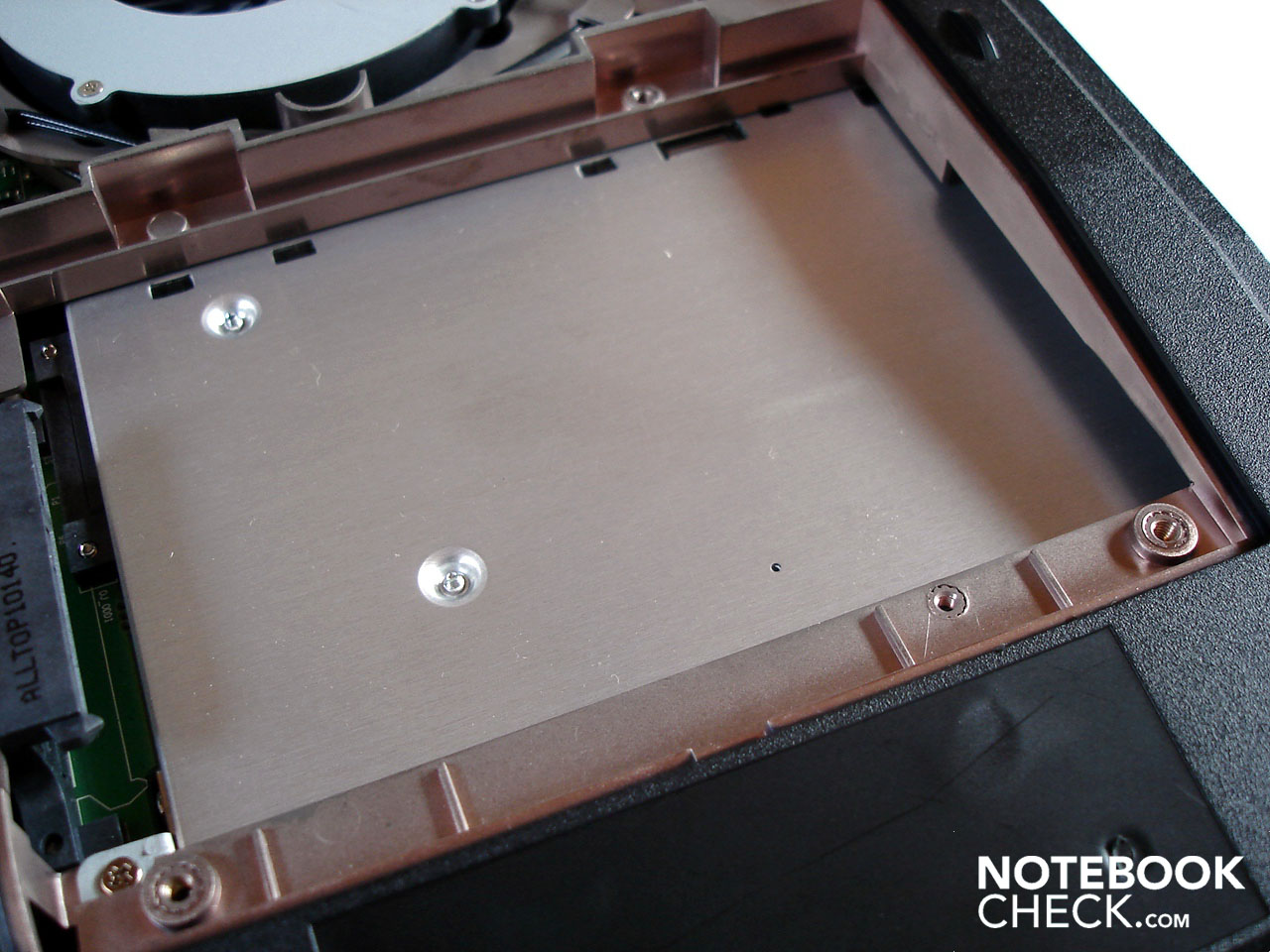 De 17,3-inch W881CU barebone van Clevo is de gebruikte behuizing. Met een gewicht van net 4 kilogram en een hoogte van bijna 6 centimeter is de behuizing niet alleen erg zwaar, maar maakt ook een nadrukkelijk lompe indruk. Toch laat de stabiliteit wat te wensen over. De onder- en bovenzijde zijn erg stijf, maar het gebied rond de optische drive geeft duidelijk mee onder druk. Omdat de batterij dubbel dienst doet als standvoet, wiebelt de behuizing hevig zonder de batterij. De notebook deksel is ook niet erg stabiel; het kan duidelijk gebogen en ingedrukt worden.