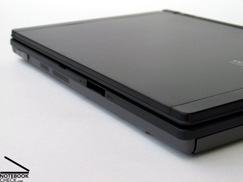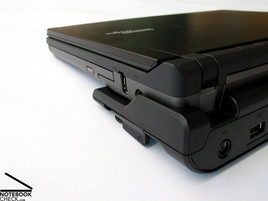 De Lifebook P7230 heeft ook een PPCard type I/II slot voor verschillende andere doeleinden, maar een ExpressCard slot ontbreekt helaas. Een kaartlezer is ingebouwd in de voorrand. De plaatsing van alle poorten lijkt erg gebruiksvriendelijk te zijn, vooral tijdens mobiel gebruik. Zelfs de twee USB poorten zouden moeten volstaan wanneer het docking station gebruikt wordt.