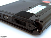 Het scharnier aan de achterkant van het apparaat is daarentegen weer bijzonder. Deze zorgt er namelijk voor dat de achterkant van de netbook iets wordt opgetild en loopt in een boog naar beneden. Ook de batterij van de netbook vinden we aan de achterkant terug, omdat er hier uiteraard meer plaats voor was dan aan de voorkant. Dit zien we overigens bij veel netbooks van andere fabrikanten ook terug.