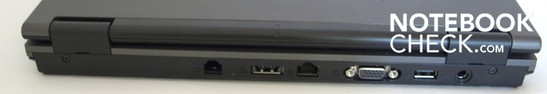 Om in detail te treden, aan de achterkant van de laptop zit een modem interface, een gecombineerde USB/e-SATA poort, Gigabit LAN, VGA en nog een van de 3 USB poorten. De derde USB poort kan linksvooraan gevonden worden, direct naast het SmartCard slot. Aan de voorkant zitten er twee audio jacks voor een hoofdtelefooon en een microfoon, gevolgd door een status LED voor de stroomconnector en de hoofdschakelaar van de WiFi. Ook een 5-in-1 kaartlezer, die SD, MMC, MS, MSPro en xD kaarten leest, mag hier niet ontbreken.