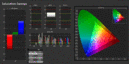 De drie afbeeldingen hier beneden laten de kleurenanalyse zien we hebben uitgevoerd met de i1 Pro 2 photo spectrometer en CalMAN 5 software. In het standaard kleurenprofiel van HP zien we dat de weergave van grijswaarden zwak is. Met name medium grijstinten laten een DeltaE (2000) van meer dan 15 zien(gemiddeld 16.35). Na kalibratie is de DeltaE verlaagd tot 5.78 (gemiddeld, zie afbeelding 4). Opvallend: met 8817 K is het witte punt duidelijk verschoven richting het blauwe gebied (te koel, beter: Asus UX31A; 5500K). De kalibratie vermindert de blauwe waas (kleuren zien er zichtbaar warmer uit) en verschuift het witte punt terug naar 7427 K.