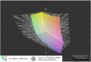 Het vermelden waard is het uitgebreide kleurbereik van het paneel. Het sRGB kleurbereik is bijna volledig gedekt, vergelijkbaar met het eerder geteste Full HD paneel in de HP 8540w. Dit plaatst het beeldscherm een goed eind boven typische consumenten notebooks, maar professionele beeldschermen - zoals de Lenovo ThinkPad W510's RGB-beeldscherm - bevinden zich in een geheel eigen klasse. Gezien dit feit biedt HP nu modellen aan met een Dreamcolor IPS beeldscherm, die het sRGB kleurbereik tot 149% zou moeten dekken, en belangrijker, het bereik van de kijkhoeken zou een ongelooflijke 89º in alle richtingen zijn. Er is al een testmodel besteld om te testen. Terug naar het testmodel voor ons: vergeleken met het kleurbereik van de Full HD versie verschilt het beeldscherm van ons testmodel slechts op een paar kleine punten.
