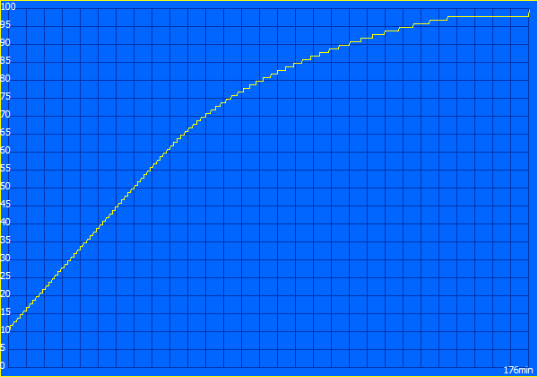 De maximale batterijlevensduur bij volle belasting wordt gemeten met Battery Eater's "Classic" test, waarbij maximale helderheid, dedicated GPU en een OpenGL-render window gebruikt worden. In deze test stopt de laptop er na iets meer dan anderhalf uur mee. De meeste games zullen nog meer energie verbruiken dan deze test.