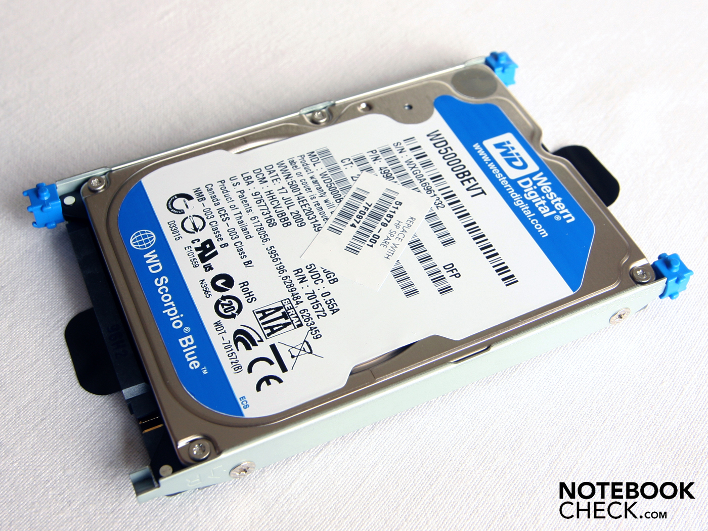 De Western Digital harde schijf, WD5000BEVT-60ZAT1, heeft een capaciteit van 500GB. De harde schijf leest gemiddeld met een acceptabele snelheid van 60 MB/s, wat bijdraagt aan de werksnelheid. De Western Digital HDD blijft echter gewoon een normale harde schijf met een rotatiesnelheid van 5400 rpm.