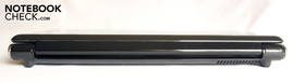 We verwachten een laag systeemgeluid omdat de laptop zo'n massieve behuizing heeft en maar middelmatig presterende onderdelen. Zonder belasting, als de processor en de grafische kaart vrijwel niets doen draait de ventilator constant en produceert dan 35,4 dB(A). Het geluid is nooit zachter. Zelfs een Alienware M17x met een QX9300 en een GeForce GTX 280M SLI grafische kaart draait op dat niveau zonder belasting.