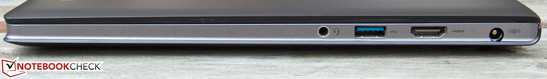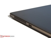 Lenovo moet door het ontwerp van het beeldscherm van de U300s alle aansluitingen aan de zijkant plaatsen. Het beeldscherm bedekt de gehele achterkant van het notebook in geopende staat. Deze oplossing zal niet echt ideaal zijn wanneer de U300s voornamelijk op een bureau gebruikt wordt. Naar onze mening zijn kleine UltraBooks klassieke secundaire apparaten die gemaakt zijn voor mobiel gebruik. Alle aansluitingen zijn makkelijk toegankelijk en ver genoeg van elkaar geplaatst om elkaar niet in de weg te zitten wanneer forse stekkers gebruikt worden.