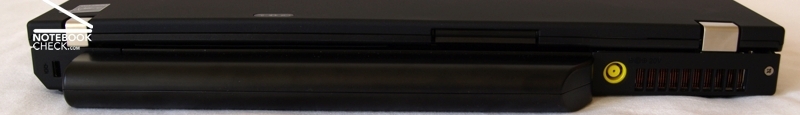 De meegeleverde 6-cells batterij die aan de achterkant een beetje uitsteekt, beperkt de openingshoek echter behoorlijk. De notebook kan echter nog steeds meer dan 180° worden opengeklapt. Helaas zit de batterij niet heel stevig in de behuizing vast en wiebelt hij een beetje.