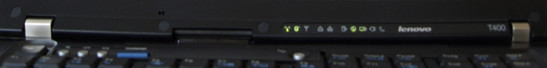 De behuizing van de T400 is robuust en goed opgewassen tegen buigkracht en scoort vooral met de massieve scharnieren die het scherm zeer stabiel houden. Een blik van dichtbij leert ons echter ook meteen dat er zwakke plekken zijn, zoals het gebied rond de Ultrabay-Drive slot.