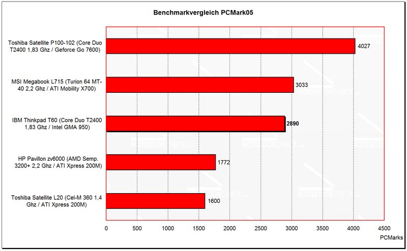 De prestatiesgegevens van T60 zijn een probleem, omdat de geïntegreerde video chip in 3D-toepassingen niet kan overtuigen. De grafische prestaties van T60p met ATI Mobility FireGL V5200 zijn veel interessanter.