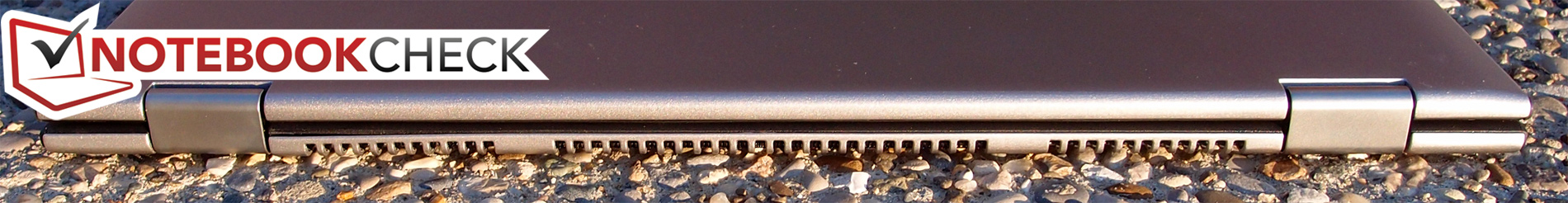 Het verschil is duidelijk merkbaar in de opvallende stevigheid: wanneer de ultrabook op een harde ondergrond staat geeft de behuizing onder druk praktisch niet mee; bij het toetsenbord is dit ook erg beperkt, behalve bovenaan in het midden. De basis unit en het schermcover kunnen beiden verbogen worden wanneer het apparaat is opengeklapt en het LCD paneel heeft zichtbaar te lijden onder druk op het schermcover. Reden voor serieuze zorgen is dit niet, zeker omdat de behuizing in dichtgeklapte toestand zo stevig lijkt. Een minder positief punt betreft de scharnieren. Ze zijn zeker sterk genoeg om het scherm te ondersteunen, maar tijdens typen of normaal gebruik voorkomen ze niet dat het scherm wiebelt in een mate die sommige gebruikers niet zullen accepteren. Gecombineerd met het hoogglans scherm leidt dit in omgevingen met heldere lichtbronnen tot storende, ronddansende reflecties.