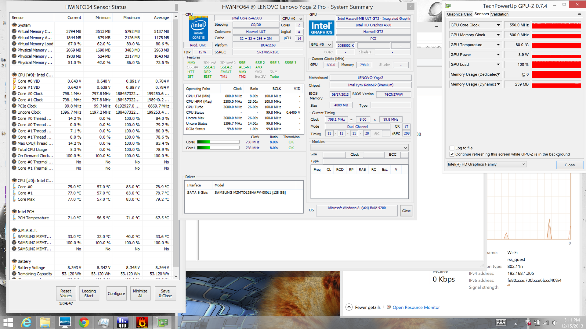 Het is het vermelden waard dat we redelijk serieuze problemen hebben ondervonden met de draadloze verbinding van de Yoga 2 Pro. Ondanks dat hij altijd verbonden bleef met het netwerk gaf het systeem na een tijdje de melding dat er geen netwerktoegang meer was. Dit konden we verhepen worden door handmatig opnieuw verbinding te maken. We hebben de notebook met zowel een Asus RT-N66U als een MediaLink MWN-WAPR150N router getest en met beiden trad het probleem op. Driver updates bleken voor ons de oplossing, maar veel gebruikers melden dat het probleem hiermee niet verholpen wordt: op Lenovo’s forums zijn er namelijk allerlei threads met dezelfde klacht. De overeenkomst tussen alle meldingen lijkt de combinatie van de draadloze Intel module en Windows 8.1 en het probleem hoeft zich dus niet per se tot de Yoga 2 Pro te beperken.