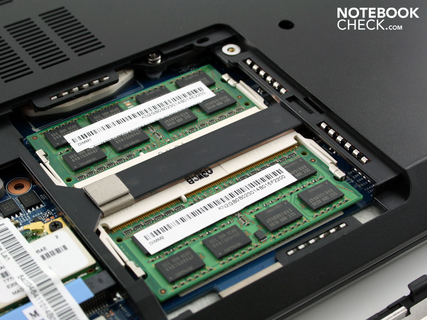 De bodemplaat is gemaakt van glad plastic en kan enkel onder de optische drive slechts iets ingedrukt worden met één vinger. Een grote deksel op de bodem bedekt de uitbreidbare componenten: harde schijf, RAM en WLAN-module.