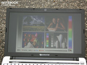 De meting van de helderheid van het beeldscherm geeft matige resultaten. De gemiddelde belichting is 216 cd/m2. Onze Gossen Mavo Monitor meet een maximum van 223 cd/m2. De verlichting van 94 procent is erg evenredig verdeelt. Er zijn dus geen oplichtende plekken op een compleet zwart scherm. De gebruiker heeft binnen zelden een belichting van meer dan 180 cd/m2 nodig. Is dat ondanks het glanzende beeldscherm genoeg helderheid om in vol daglicht te werken?
