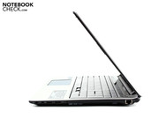 Aansluitingen zijn niet het sterkste punt van de TX86. De vier USB 2.0 poorten zijn voldoende voor een printer, muis of externe harde schijf. eSATA of ExpressCard/34/54 is niet beschikbaar. Links- en rechtshandigen zijn beiden in het nadeel tijdens het gebruik van een muis. USB-kabels, net als HDMI / VGA hinderen het gebruik van een muis. USB-poorten die achteraan beide zijkanten gepositioneerd waren zouden een potentiële kabel chaos op het bureau voorkomen hebben. Maar de USB-poort positionering zoals deze nu is, is niet erg goed. Er bestaan geen dockingstations voor de EasyNote TX86, de beste optie zijn USB poort replicators.