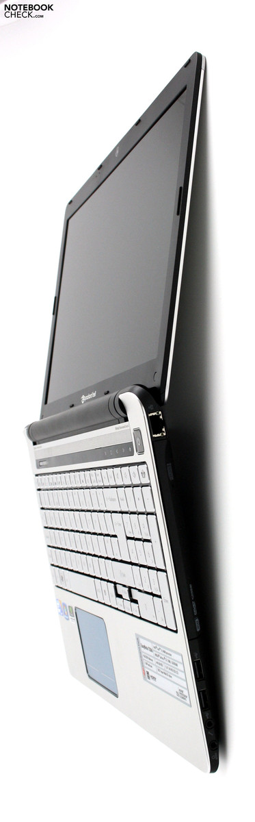 Dat geld niet helemaal voor het toetsenbord. De rechterzijde boven de optische drive rimpelt duidelijk. We kunnen de deksel maar met een paar graden buigen. De constructie is erg stijf. Je kunt ook spreken van weinig bewegingsvrijheid. Druk op het oppervlak van de dunne deksel creëert een zichtbare vervorming aan de voorzijde bij middelgrote tot grote druk.