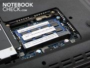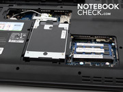 De bodemplaat is gemaakt van kunststof, en heeft niet teveel deuken overal. De grote opening aan de onderzijde biedt de mogelijkheid om de harde schijf, RAM, of WLAN-module te wisselen. Mensen die graag hun systeem uitbreiden zullen blij zijn met het vrije mini PCI Express-sleuf. Het is bijvoorbeeld mogelijk een Bluetooth-module toe te voegen.