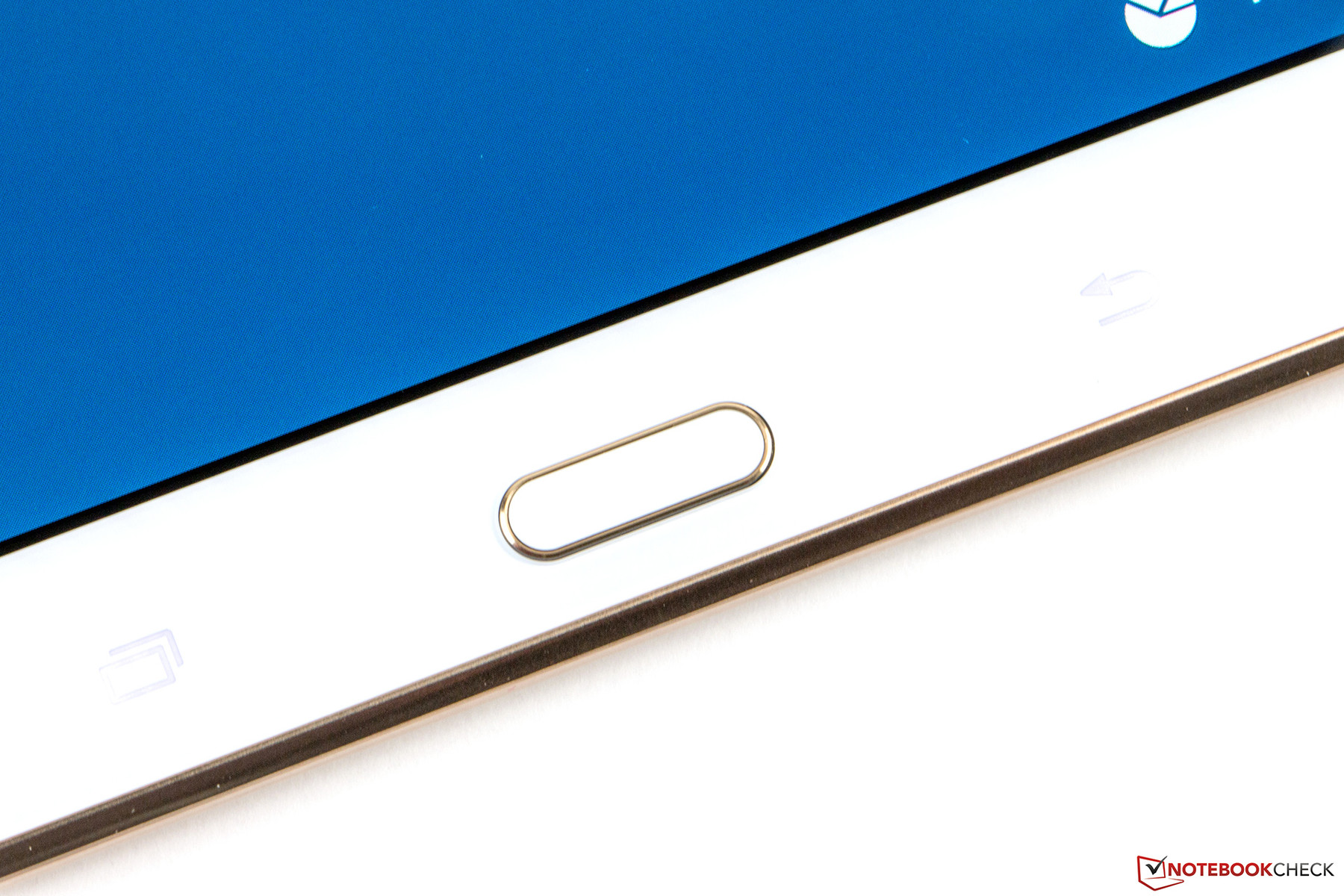 De vingerafdrukscanner is geïntegreerd in de thuisknop. Maximaal drie vingerafdrukken kunnen opgeslagen worden. Samsung blijft benadrukken dat deze informatie alleen op het apparaat opgeslagen wordt. Zodra de functie is geactiveerd kunnen alleen vingerafdrukken de tablet ontgrendelen. Daarnaast kan er via vingerafdrukken betaald worden met PayPal en het Samsung account. Als de opgeslagen vingerafdrukken verloren gaan, zorgt een alternatief wachtwoord ervoor dat de tablet alsnog ontgrendeld kan worden. De scanner zelf werkt relatief goed, hoewel de volledige vinger gescand moet worden. Het kwam nog wel eens voor dat we te snel waren of niet de gehele vinger lieten scannen.