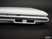 The loudspeaker accommodated on the left and right of the display bezel are supported by a subwoofer in the base. This leads to considerably more midranges and basses at sound emission, which turn out to be quite adequate and balanced for notebook conditions. The use of an additional USB loudspeaker or earphones can be waivered on for a considerably long time and more often. Audiophilic bon vivants will, however, barely be satisfied and will have to, as usual, set on external solutions in order to exhaust the HD sound chip.