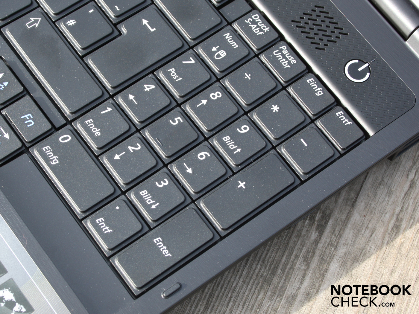 Zakelijke gebruikers kunnen misschien best zonder al die exotische aansluitingen, maar een goed toetsenbord is toch wel essentieel. Samsung heeft op dit gebied naar onze mening goede keuzes gemaakt. Het toetsenbord typt dan ook zeer fijn. Het oppervlak van de toetsen is stevig en ze hebben een duidelijk drukpunt. Ze bewegen soepel en kunnen gemakkelijk ingedrukt worden. De indeling is ruim, ondanks het aparte numerieke gedeelte. Zelfs mensen die niet blind kunnen typen, zullen zeer snel kunnen typen met de soepele toetsen. Daarnaast is de witte belettering zeer duidelijk en de pijltjestoetsen zijn door een kleine open ruimte gescheiden van de rest van de rest van het toetsenbord. De feedback van de toetsen is duidelijk, maar niet overdreven. Ze maken een stil klikgeluid wanneer je ze indrukt. Het gebied onder het toetsenbord heeft een ruwe textuur, wat fijn is tijdens het typen. Je handen blijven daardoor namelijk op hun plek en glijden niet van de notebook af.