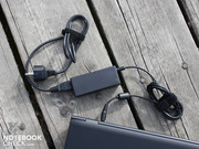 De kleine 60 Watt adapter lijkt wat beperkt voor het maximale energieverbruik van 67.5 Watt. Als je daarbij optelt dat de batterij ook wordt opgeladen, zit je al over de 100 Watt. Hiervoor is echter een beveiliging ingebouwd, waardoor de batterij nooit wordt opgeladen tijdens zware belasting van de CPU (dit zagen we tijdens de stress test).