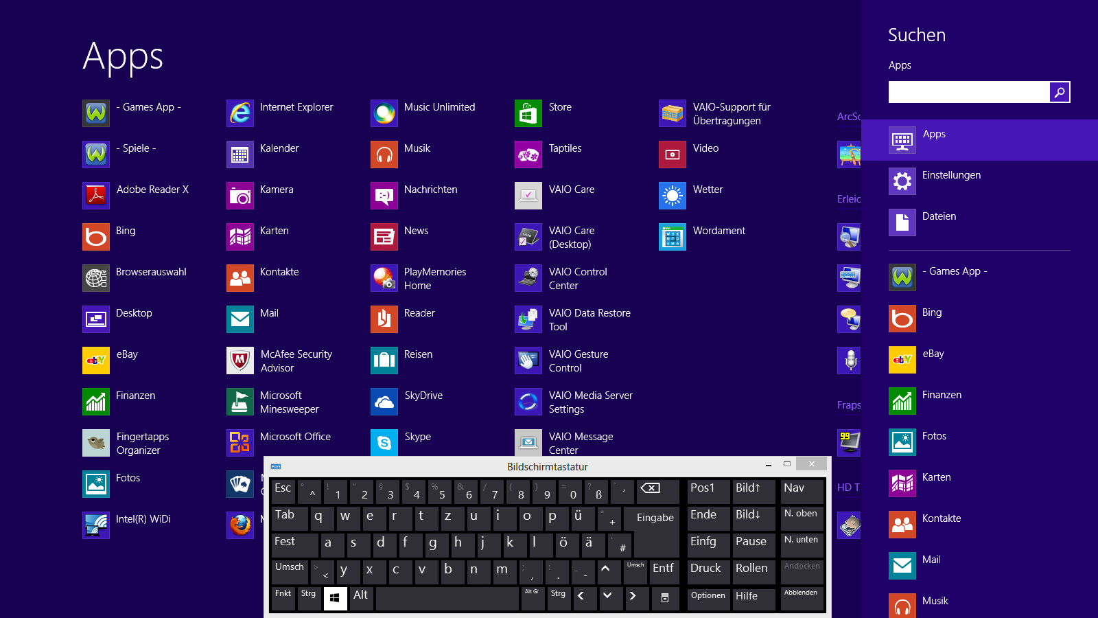 Het toetsenbord op het beeldscherm kan op diverse groottes en lay-outs ingesteld worden. Het is ook mogelijk om het de grootte van het beeldscherm te laten aannemen. Dit zorgt voor zeer grote toetsen, waarmee ook langere stukken comfortabel getypt kunnen worden. Helaas zal de Vaio Tap 20 niet vaak op de schoot gebruikt worden door z'n grootte. Een externe oplossing zal veel aangenamer zijn om mee te typen.