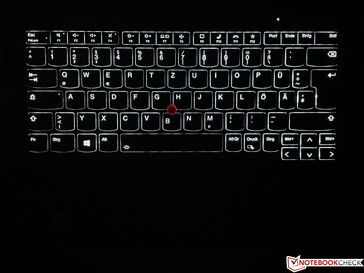 Het toetsenbord wekte enige bezorgdheid voorafgaand aan de lancering, maar je krijgt nog steeds dezelfde 1,5 mm toets travel als voorheen. De subjectieve type-ervaring is echter nog steeds een beetje slechter, omdat de toetsen niet platter zijn. We waren in staat om het toetsenbord te vergelijken met de oudeThinkPad X1 Carbon G7en de type-ervaring is slechter, maar nog steeds beter in vergelijking met de recent geteste X1 Titanium Yoga met 1,35 mm travel. Vergeleken met deX1 Titanium Yogazijn de F-toetsen ook hoger en de achtergrondverlichting gebruikt slechts één kleur. Al met al is het toetsenbord nog steeds erg goed in vergelijking met andere rivalen, maar we denken dat de ontwikkeling hier de verkeerde kant op gaat