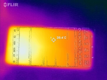 De ThinkPhone 25 beheerst de oppervlaktetemperaturen van de behuizing vrij goed. In ons belastingsscenario met de Burnout-benchmark maten we een matige afvalwarmte van maximaal 46 graden Celsius, maar dit leidde er niet toe dat de prestaties van het systeem werden afgeremd in de 3DMark-stresstests.